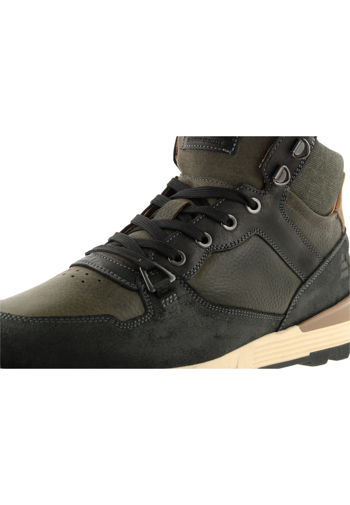 De sneaker heeft een bovenwerk van leer. Het binnenwerk is gemaakt van 60% polyester en 40% PU. Daarnaast is de sneaker makkelijk aan en uit te trekken door de vetersluiting.